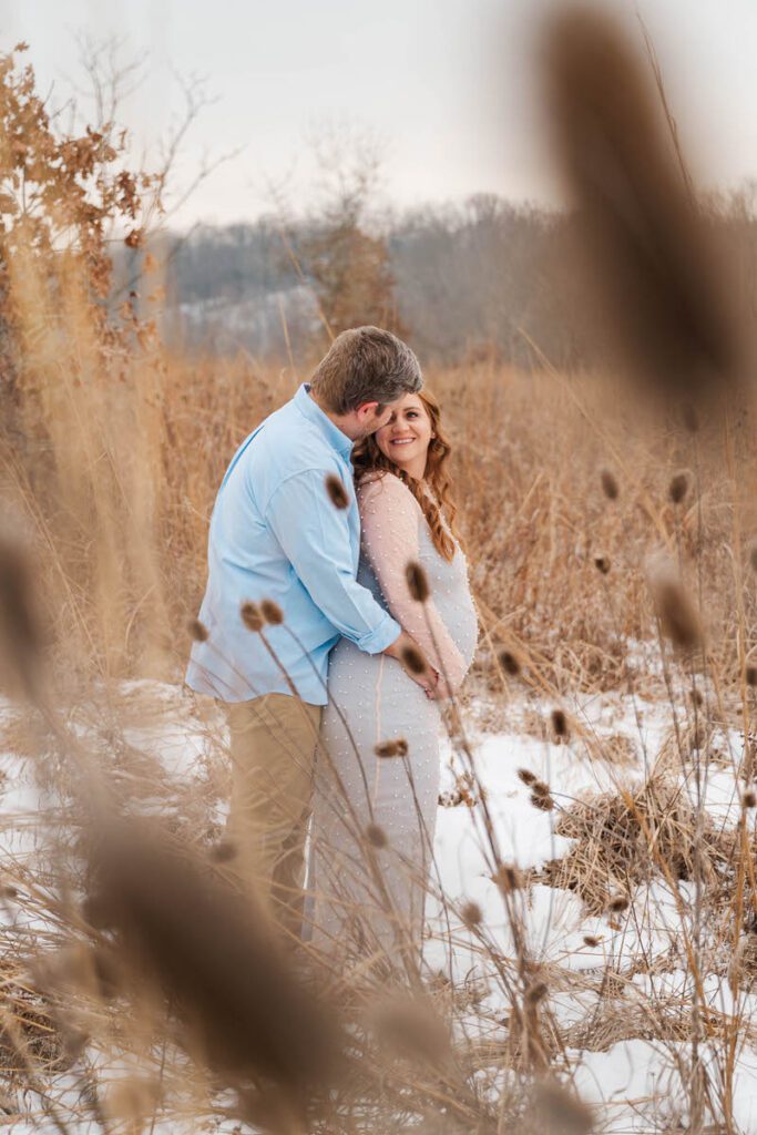 We met for their maternity session at Beckley Creek Park, right in the middle of a snowy Kentucky winter. And when I say cold… I mean COLD. These two were absolute troopers, trekking through snow and freezing temps with nothing but smiles, laughter, and so much love for the little boy they’ll be welcoming in just a few short months.